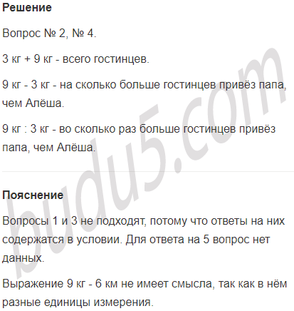 4) Чьи гостинцы тяжелее - Алёшины или папины? На сколько?
